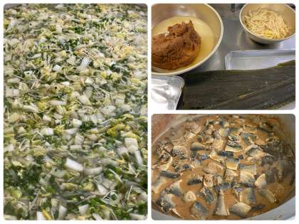 「さばのみそ煮」は、骨付きのさばを使用しています。さばの臭みを消し、食べやすくするためにしょうが、赤みそを使っています。