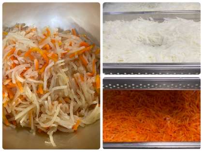 「紅白なます」は、おせち料理の一品です。細切りにした具材を甘酢であえた料理を「なます」といいます。紅白なますは、にんじんとだいこんでお祝いの色である紅白を表しています。にんじんやだいこんは土の中でまっすぐ伸びていくことから、地に足をつけて(落ち着いて)家族が過ごせますようにという願いが込められています。