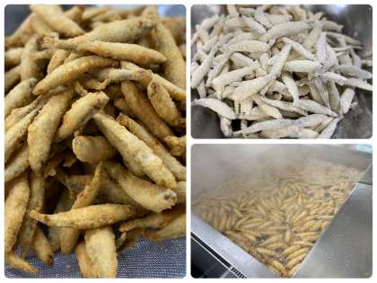 わかさぎは、海で成長して卵を産む時期に川をのぼってくるものと、湖に住んでいるものに分かれます。わかさぎは、骨がやわらかく、丸ごと食べることができます。骨が苦手な子は、小さいわかさぎから上手に骨をとりのぞいて食べていました。