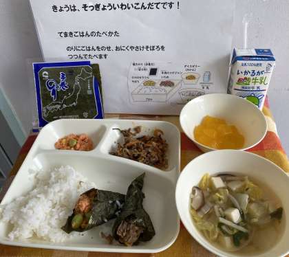 手巻きご飯を食べたことがない子どもたちもいて、最初は苦労していましたが、巻き方を教えてあげると上手に巻くことができ、「めっちゃおいしい!」とみんな大喜びでした。