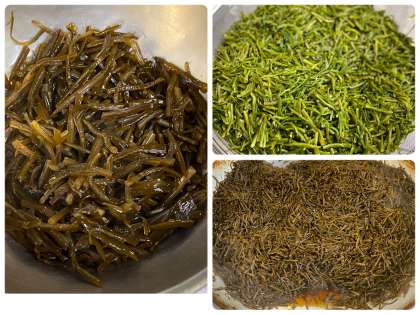 くきわかめは、わかめの葉の芯の部分で、コリコリとした歯ごたえが特徴です。