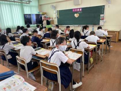 5年1組は「心の健康」について、2組は「日本の気候」について学習をしました。