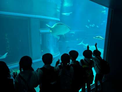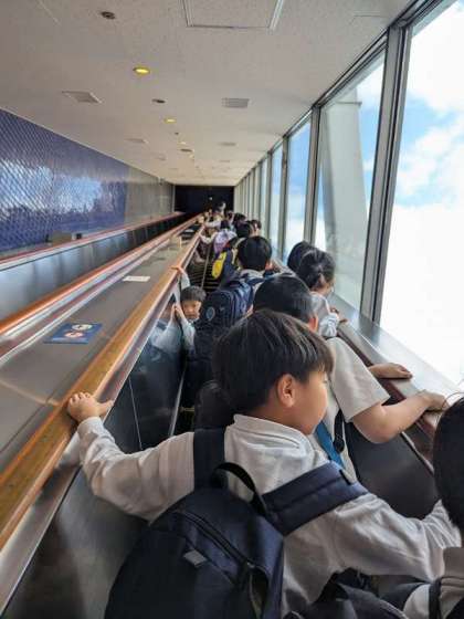 入口で集まり、40mのエスカレーターで上がれば、たくさんの魚たちがいます。