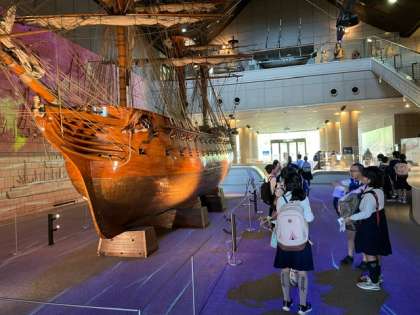 博物館の中では電車や船、航空機などの展示を見たり、運転や操縦をゲームで体験したりして楽しんでいます!
