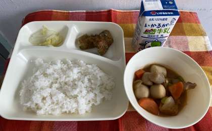 給食のちくわは、「たら」や{イトヨリダイ」といった白身魚のすり身を使っています。