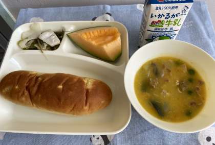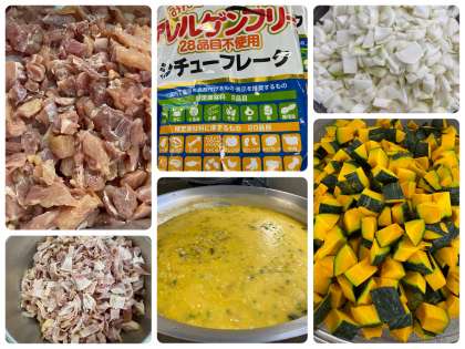 「鶏肉とかぼちゃのシチュー」は、6月から使用できる生のかぼちゃを使用したシチューです。アレルギー対応のシチュールウの素を使用します。