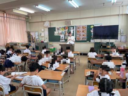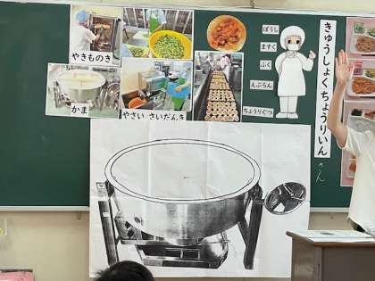 「こんな大きな釜でつくるのー」や「給食おいしー」と、いろいろな感想がありました。