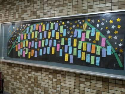 ささのは さらさら ♪ 玄関の掲示が変わりました。 短冊に願いを書きました。