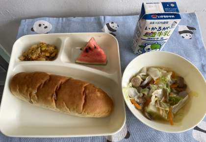 これに夏が旬の「すいか」を組み合わせています。ひと玉を1/64切れに切ります。とても甘くて美味しかったです。