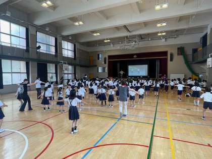 学校では、今日と明日の2日間、お昼休みに盆踊りの練習があります。