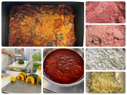 「かぼちゃのミートグラタン」は、かぼちゃに上新粉を使用したケチャップ味のミートソースを合わせています。パン粉も米粉のものを使用しています。