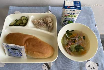 1学期最後の給食は子どもたちの大好きな鶏肉のからあげで締めくくりました。