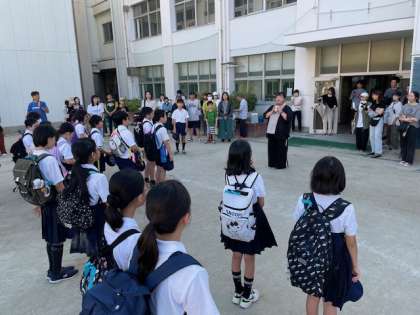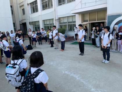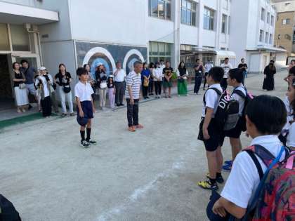出発式では、児童代表がしっかりと挨拶しハチ高原に出発しました。