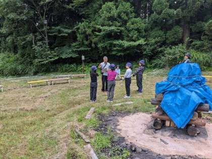 キャンプファイヤーの準備です。