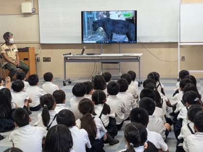 本日28日、2時間目に1年生、3時間目に2年生を対象に、天王寺動物園から飼育員さんに来ていただき、出前授業を行ってもらいました。