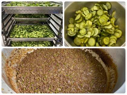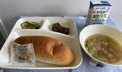 今日の給食にはきゅうりのピクルスが出ました。焼き物機で蒸し、砂糖、塩、ワインビネガー、うすくちしょうゆで作った調味液につけ、十分味を含ませています。