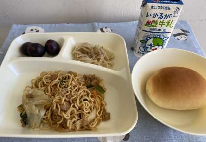 今日の給食は、オイスターソースを使った中華風の焼きそばです。今日の給食も美味しかったです。