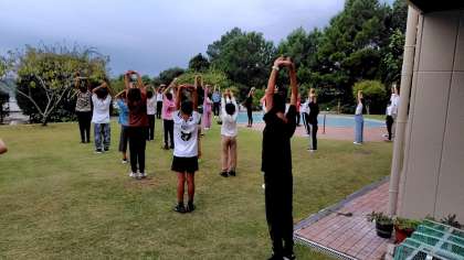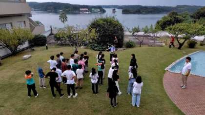 朝の集いをしました。眠たそうですが、しっかり起きれました。
