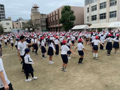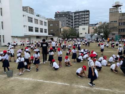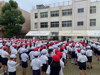 今日の児童朝会では、26日の運動会に備え全校児童で石拾いをしました。