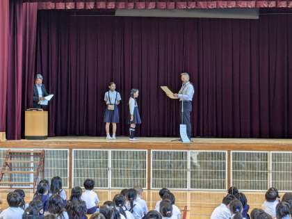 最初は「薬と健康の週間」の絵画で、3年生児童が優秀賞、6年生児童が大阪府知事賞に選ばれました。