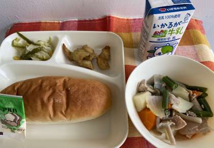 今日の給食にも食物繊維が多く含まれている食品が使われています。好き嫌いなく食べてもらえるとうれしいなぁと思います。
