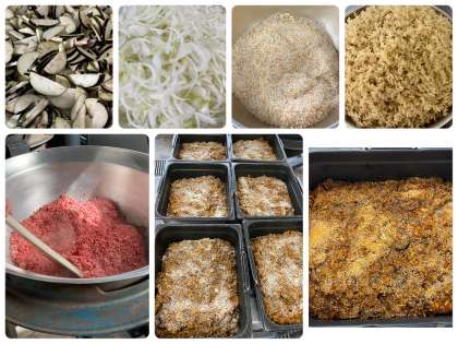 「なすのミートグラタン」は、なすを牛ひき肉、豚ひき肉、マカロニ(米粉)、たまねぎとともにケチャップ味のグラタンにしています。なすが苦手な児童にも食べやすい献立です。