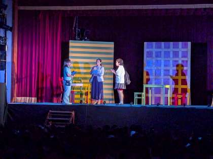 11月8日は、劇鑑賞会がありました。劇団銅鑼(どら)の『「真っ赤なお鼻」の放課後』という題名の演劇です。