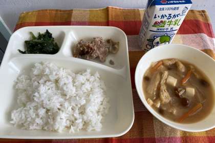 今日の給食では「なめこ」が使用されました。「なめこ」はきのこの一つで、表面にぬめりがあることから、「ヌメリタケ」ともよばれています。食用に作られたもののほか、秋には天然のなめこがお店に並ぶこともあります。今日も美味しく頂きました。