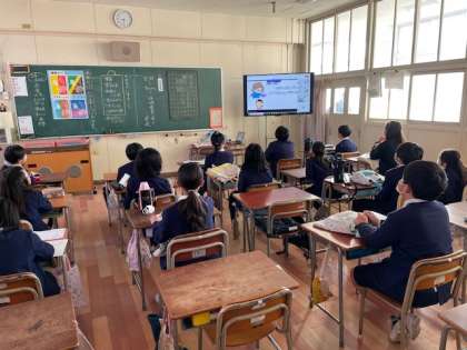 いつもなら講堂で児童集会をしますが、今日は放送で行いました。