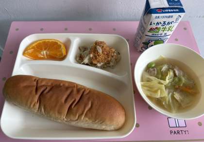 押麦は、主にエネルギーのもとになる食べ物です。おなかの調子を整える働きをする食物繊維も多く含まれています。生クリームを使用しているので、コクがあって美味しかったです。