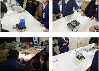 ・丸底フラスコを使い、水を熱したときの変化の実験