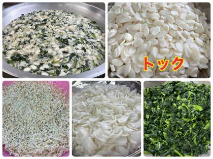 「トック」は韓国・朝鮮のもちが入ったスープです。青みに冷凍のこまつなを使用しています。今日も美味しく頂きました。