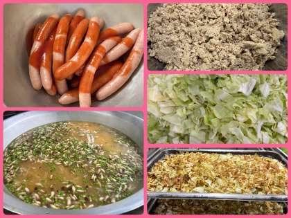ウインナーソーセージは、豚や牛のひき肉を使って作られています。太さが20ミリメートルより細いものをいいます。今日の給食では、ゆでたウインナーソーセージにケチャップ、砂糖、トンカツソース、ウスターソースを合わせて煮、でんぷんでとろみをつけたソースをかけました。今日も美味しく頂きました。
