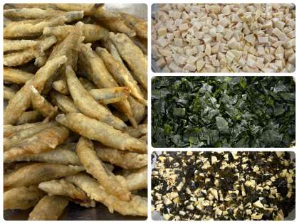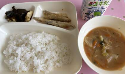 春に収穫されるたけのことわかめは、『春先の出会いもの』といわれ、煮ものや汁ものによく組み合わされています。給食では、「わかたけ煮」として煮ものにしています。冷凍のわかめは、煮すぎるとやわらかくなるため、最後に加えます。たけのこは、大阪産のたけのこを使用しています。