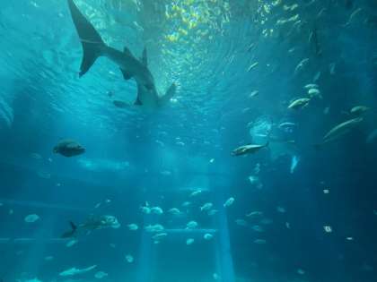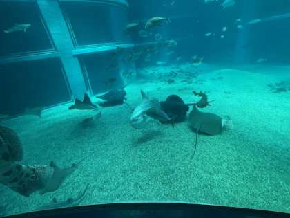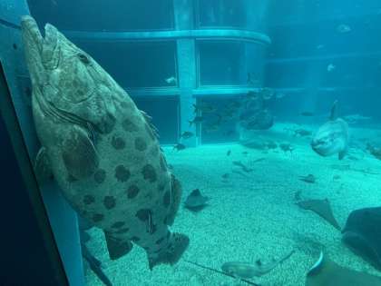 大型水槽の下には何がいるのかな。