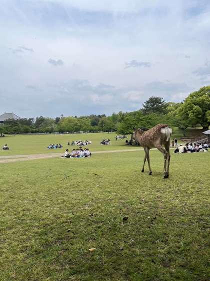 校長先生から、鹿たちの住んでいる場所にお邪魔させてもらうという気持ちを忘れずに過ごすように、お話がありました。真剣に話を聞いた子供たちは、マナーよく過ごしました。