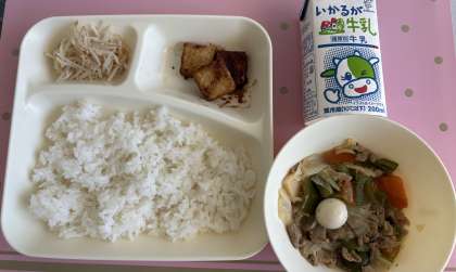 「八宝菜」の「八宝」とは、八種類ではなく、たくさんの材料を集めて作ったという意味です。今日は【卵】の除去食です。