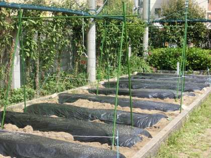 中、下:学習園も教職員で整備し、この通り!ネット支柱はどの学年でしょう?