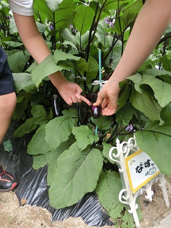 こちらは、5年生!インゲンからナスの収穫期の最盛期を迎えつつあります!