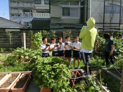 今日は、5年生の「カボチャ」の収穫です!4月に植え付け、本日収穫です、これらのカボチャは21日からの林間学習(ハチ高原)に同行し、夏野菜カレーの食材となります!