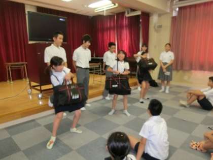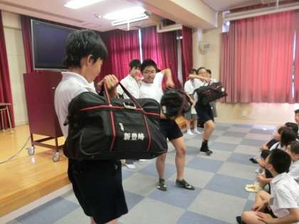 説明では、実際の中学生のカバンをかつぐ体験もあり、その重さに全員ビックリです!