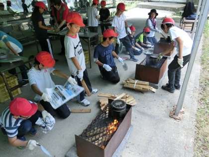 メニューは、夏野菜カレー、もちろんこの日のために栽培してきたカボチャやナスもたっぷりと入っています!
