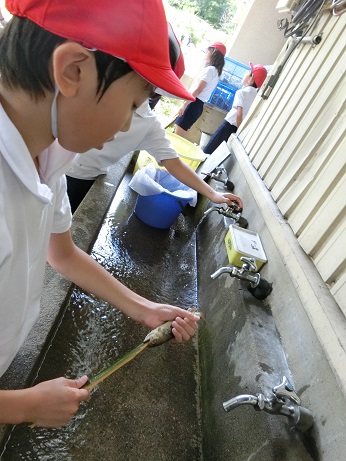清流の冷たさにビックリ、もちろん最後は自分で串をうち、塩焼きでいただきます♪