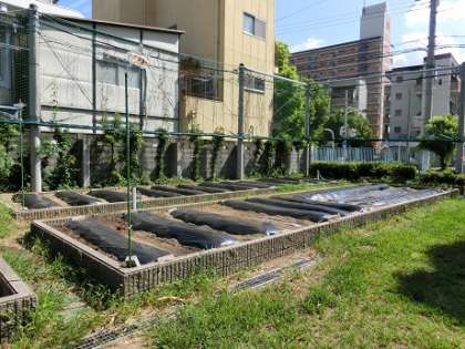学習園も8月末に教職員で、耕運機を使い整備し、畝立てとマルチ張りを終えました!