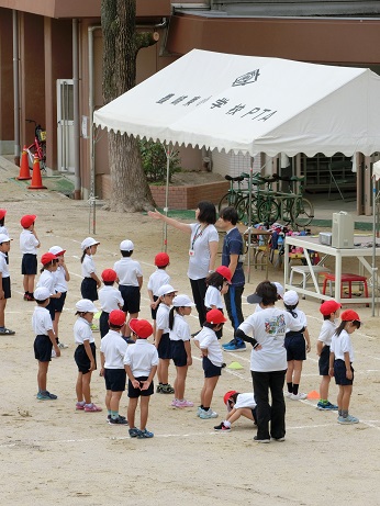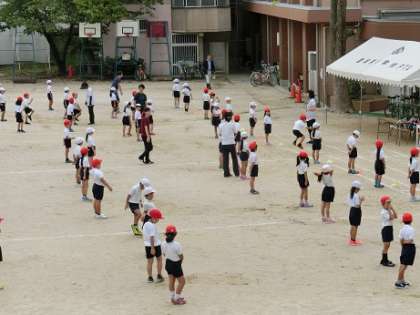 月末の運動会を目指して各学年の練習が進んでいます、写真は、1・2年生の集団演技の練習の風景です!