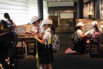 昼食後は低・中・高学年に分かれての取り組みです、高学年はピース大阪の見学です!写真はピース大阪の見学風景です!