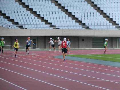 午後からは、ヤンマースタジアムに移動し、100M走、800M走、リレーと陸上競技に挑戦しました!