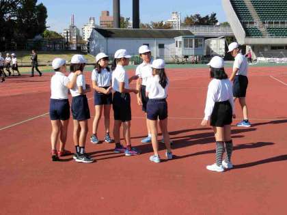 11月2日、絶好の晴天の元、6年生が北区スポーツ交歓会に参加しました!この交歓会は北区内の6年生が一堂に会し、スポーツの交流を行う目的で、毎年この時期に長居競技場で開催されています!