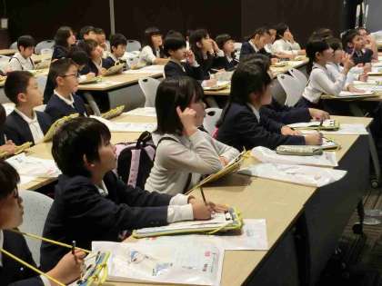 そして、新聞製作のレクチャーです、熱心にメモを取ります!