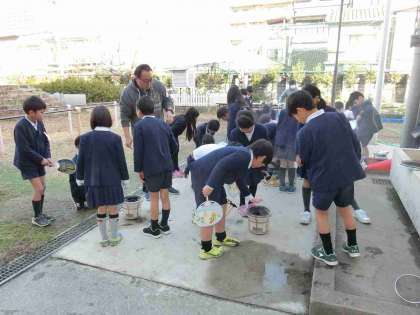 2月1日、3年生が七輪を使って炭火を起こし、餅を焼く体験学習にトライしました!